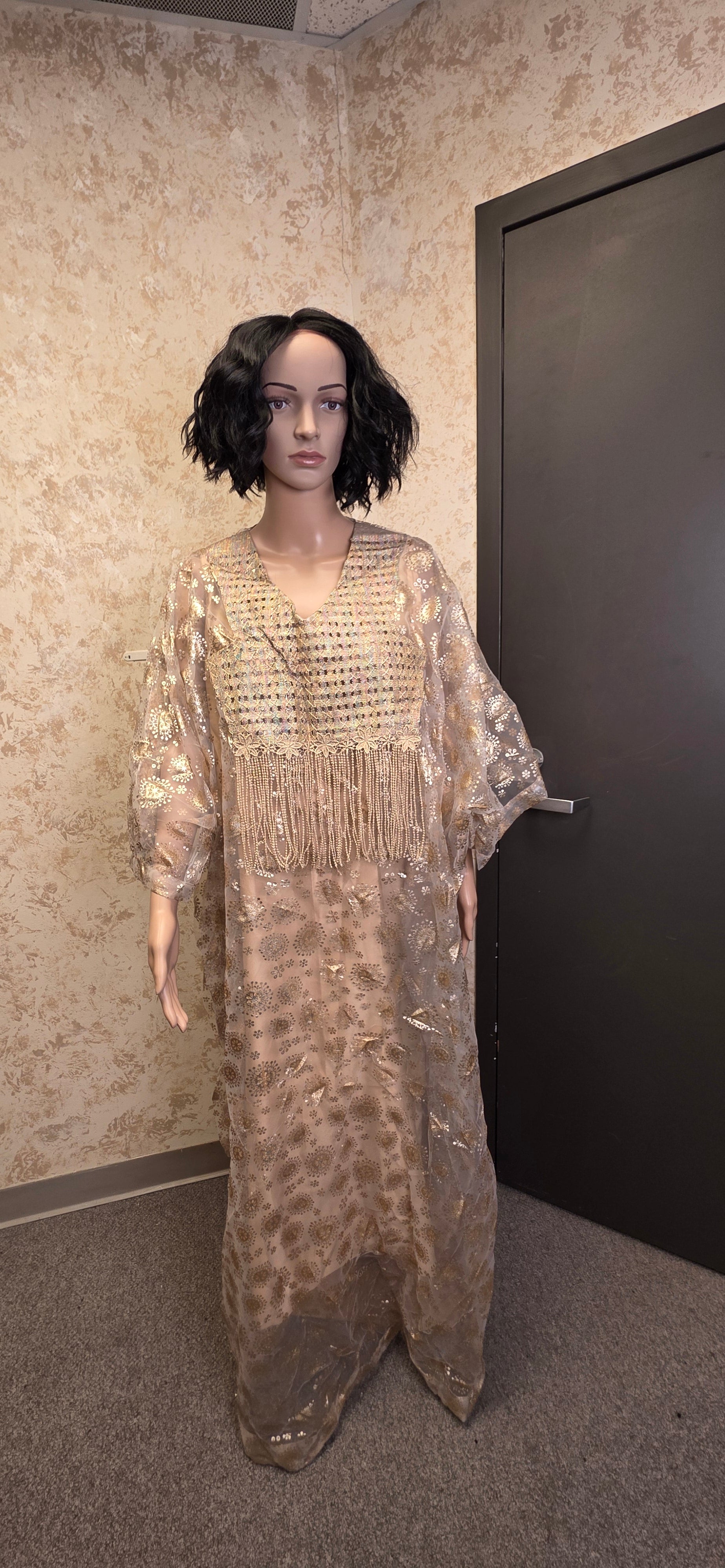 Features: Sequins, embroidery, beaded fringe detail