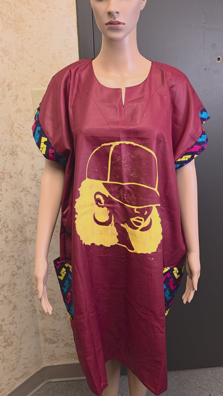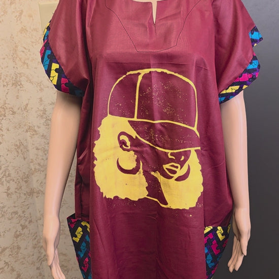 Step into confidence and creativity with the Urban Royalty Kampala Dress, a vibrant hand-dyed design that merges traditional art with a bold modern edge. Featuring a rich burgundy base with a striking golden silhouette print, this piece brings attitude and culture together effortlessly.